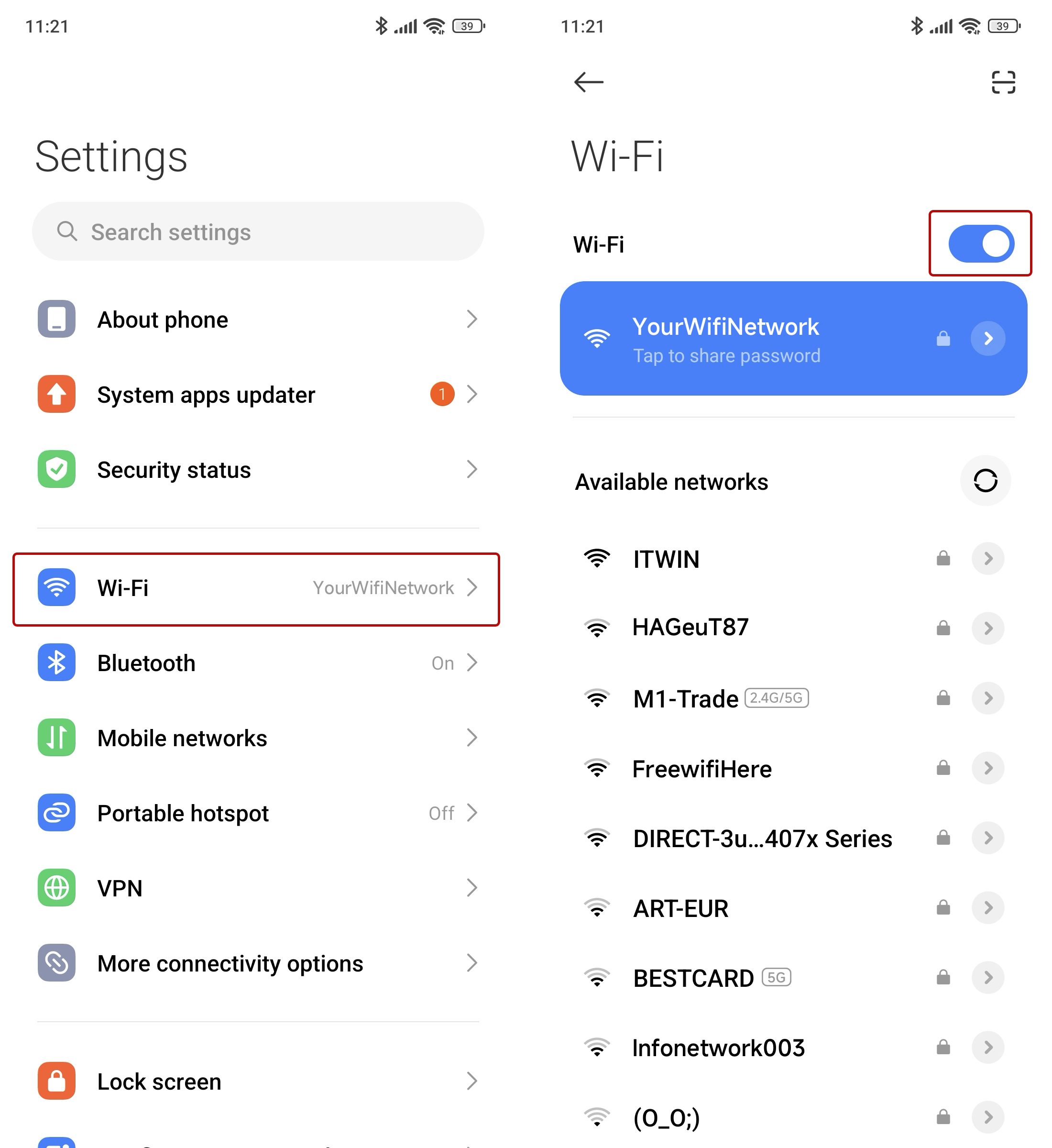 - Disattivate il Wi-Fi nelle impostazioni del telefono.