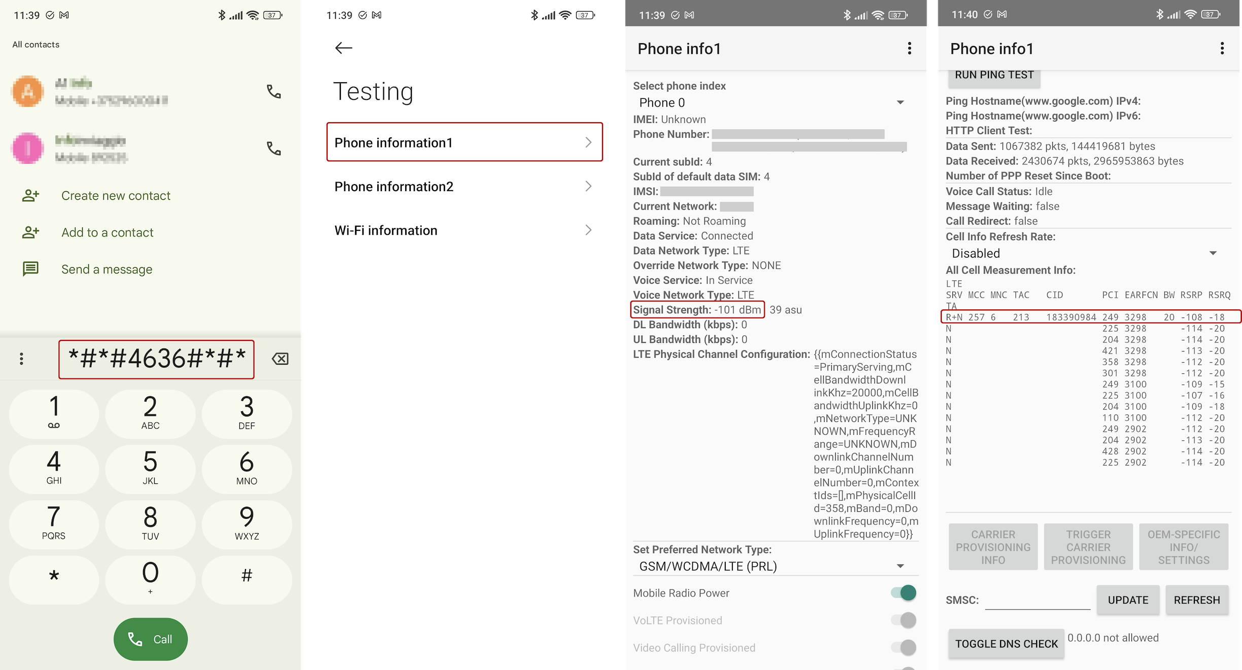 - Esempio: Se "Info Banda" mostra 3, significa che il telefono sta utilizzando la banda LTE 3 (1800 MHz).