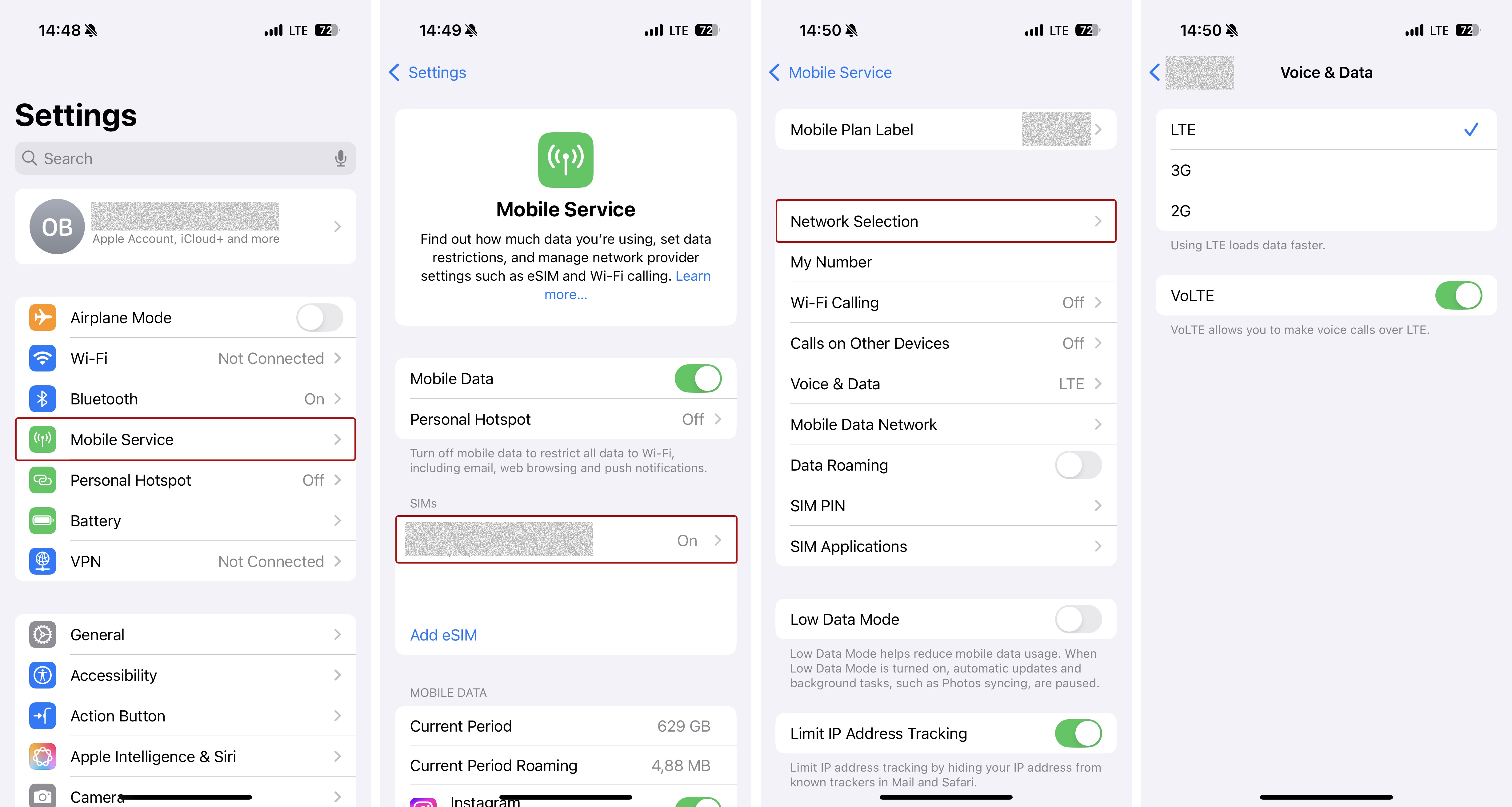 iPhone: Vai a Impostazioni → Servizio mobile → SIM → Voce & Dati e scegli 2G/3G o GSM, se disponibile.