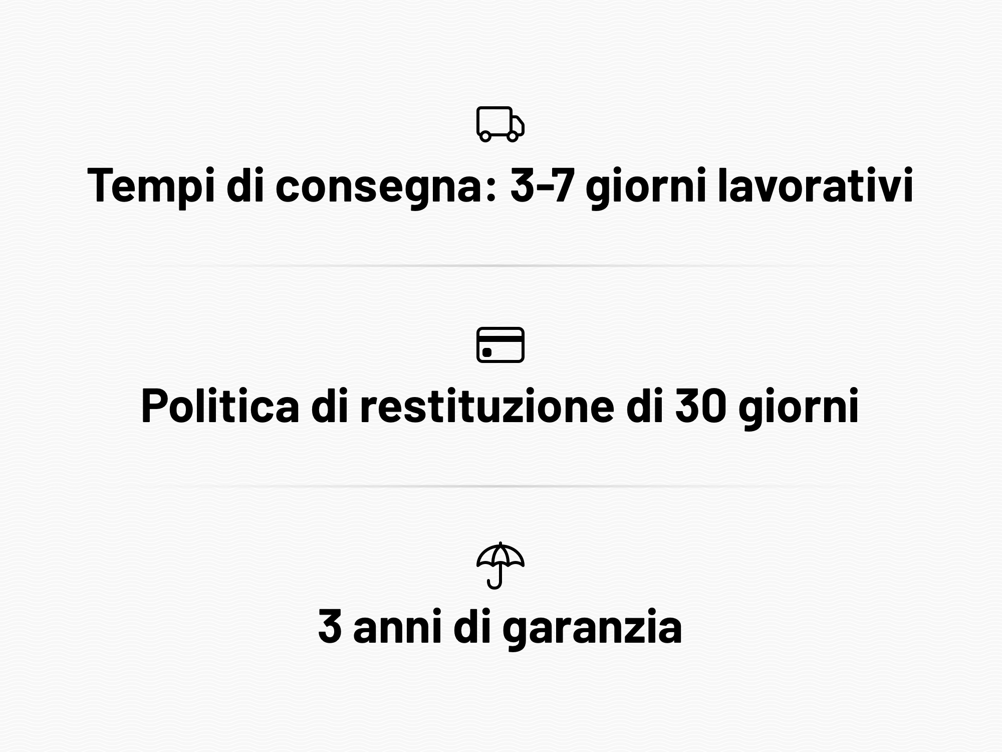 La soddisfazione del cliente viene prima! È possibile restituire o sostituire l'amplificatore entro 30 giorni dalla consegna dell'ordine.